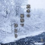 A peaceful Japanese wooden cabin inspired by traditional ryokan style. Low lounge chairs, warm lantern light, and snow-covered cedar trees outside bring a serene and meditative winter night atmosphere.